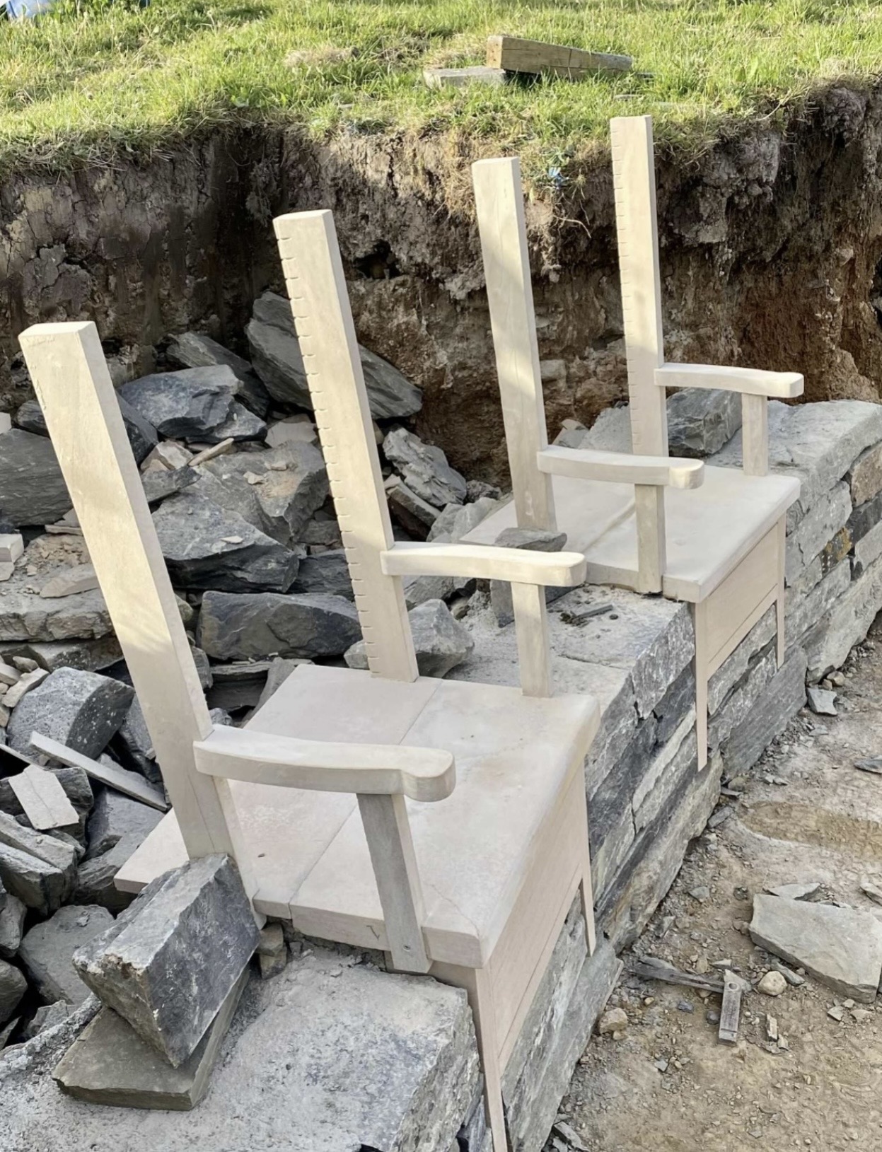 These unique seats have been recreated entirely in stone. Built as part of the feature wall overlooking the garden, they combine a well-known piece of Orkney heritage with modern stone craftmanship and form part of the character of the garden.